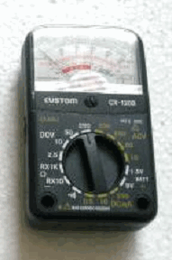 (通常アナログテスターの場合は、マイナス端子側にプラス電圧がでる。デジタルの場合は逆の場合が多い。)