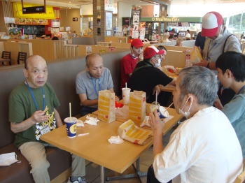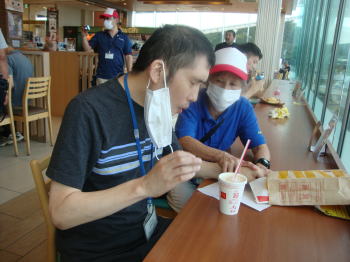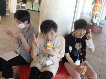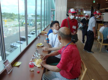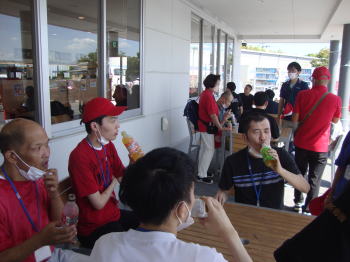 | 桂川サービスエリアでジュース!皆さん満足そう(*^_^*) | |
