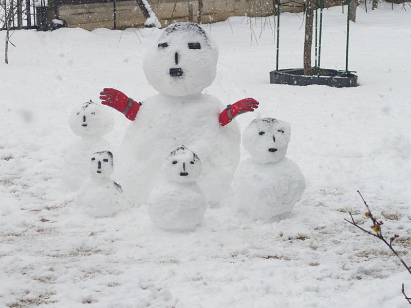 | ![]() | 夜明けから降り続いた積雪。 『冬を楽しまなくっちゃ』って、お富美さんが雪遊びを始めた。 俺はストーブの前で少大工を楽しむ。 楽しい遊びの成果は【雪だるま】だった。俺が気に入ったの は、雪ダルマの子供達。お富美さんのセンスに絶賛せり。 |