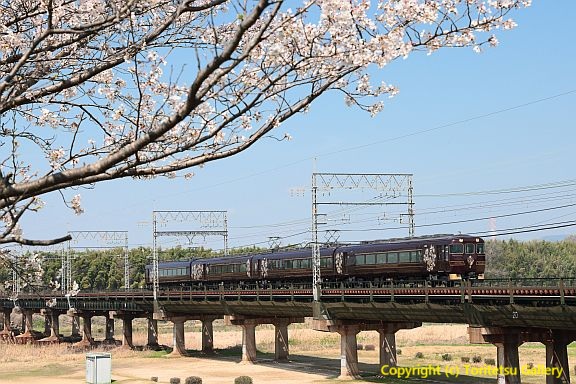 列車は旧12200系特急車を改造した観光特急「あおによし」19200系。こうして写真を撮るとダークカラーで今一つ見栄えがしないのが残念ですが、内装はサロン風に改造され、食事なども楽しむことが出来る様になっているようです。