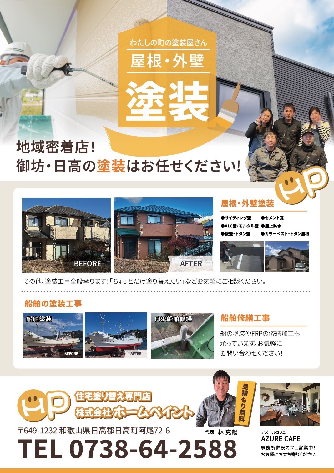 (株)ホームペイントは歌山県日高郡日高町の住宅塗り替え専門店