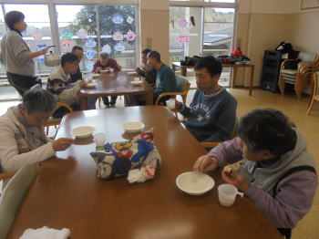 みずほ寮の方も一緒に参加し、お昼には恵方巻き、おやつには毎年恒例の