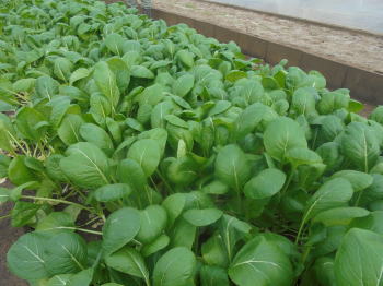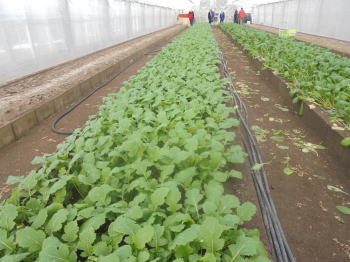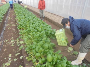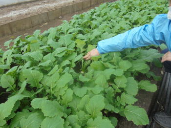 | 大きく成長しました!小松菜です。 | 皆で協力し、出荷作業をしています(^o^) |