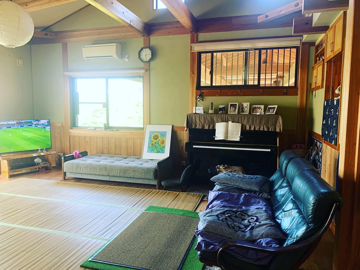 お風呂 お風呂は共用です。お風呂からも新鹿湾が一望できます。屋外に温水シャワー設備があります。 サンルーム・・・・・・自由にお使いください。 洗面所と洗濯室 リビングルーム・・・・・・24畳あります。自由におつくろぎいただけます。 カフェさくら・・・・・・敷地内にあります。